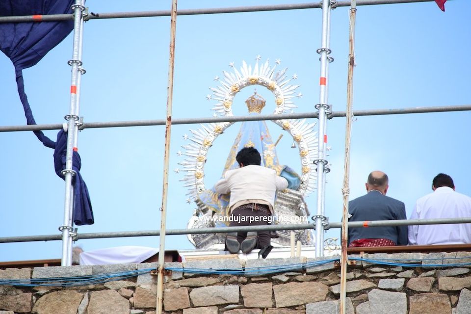 Pasado por agua (literalmente), fue el camino del Sábado de Romería, aún así el ascenso al Santuario fue fluido, sin apenas retenciones, porque el grueso de asistencia se produciría la madrugada del Sábado al Domingo y en las primeras horas de la mañana, así que cuando la Virgen de la Cabeza estaba en procesión, los aledaños del Cerro presentaban un lleno total para ver a la Reina y Señora.