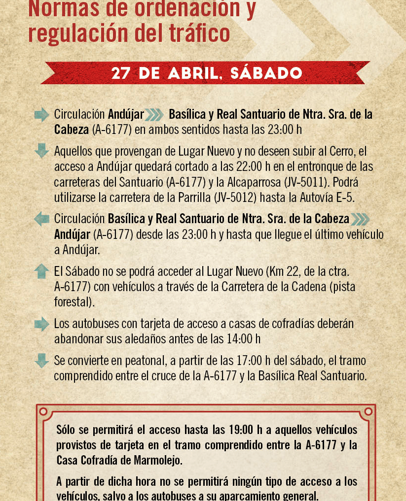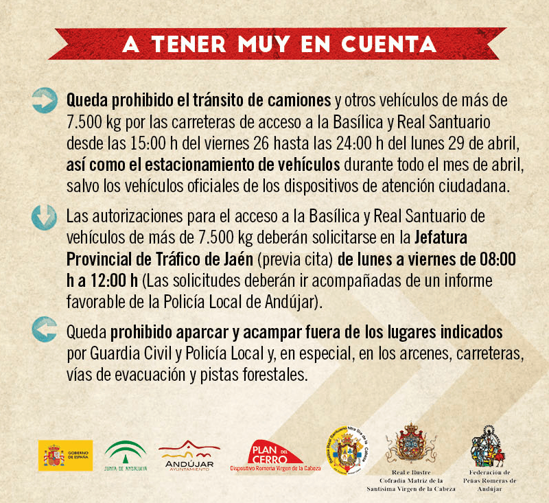 Información de Interés a tener en cuenta en la celebración de la Romería de la Virgen de la Cabeza.