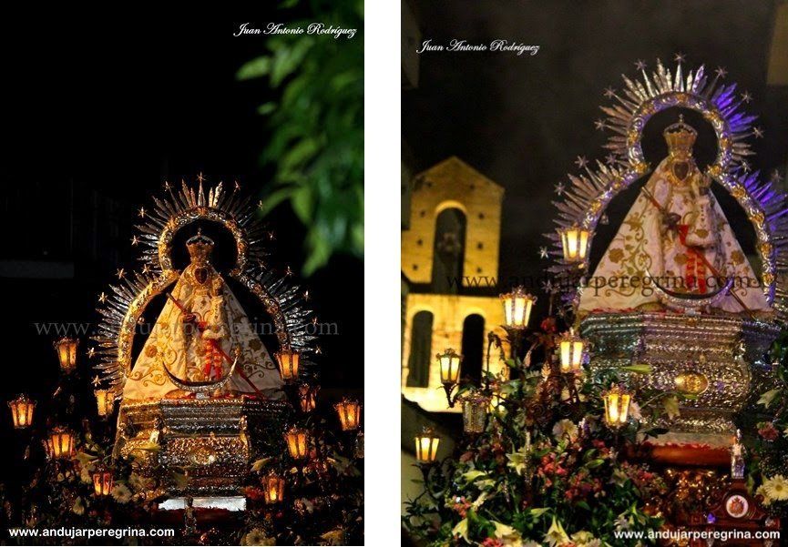 La Morenita ha recorrido las céntricas calles de la ciudad, seguida por su pueblo, vitoreada y aclamada, querida por sus hijos, una emocionante procesión que ponía punto y final a unas semanas de cultos que comenzaba con la multitudinaria e histórica Romería a su Santuario de Sierra Morena, semanas que hemos dedicado íntegramente a la ciudad de Andújar y su Patrona, una ciudad que siempre lleva al Santuario, una ciudad siempre peregrina.
